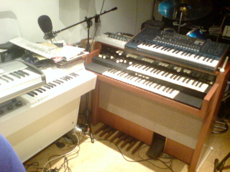 This is my live rig dating back to 2006 which is a bit larger now, less my Hammond C3 which was just to big to bring into my apartment at the time. M400 seen center. |